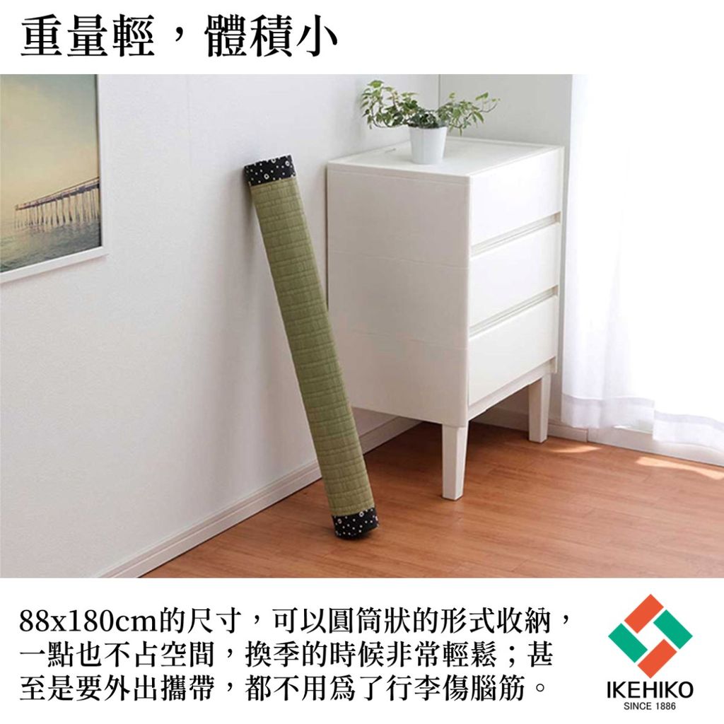 【品牌資訊】自 1886 年池上彥太郎先生在福岡創立 IKEHIKO 以來,歷經明治、大正、昭和、平成至令和時代,成為日本藺草製品市場的代表品牌。百年來,池彥深耕藺草工藝,從種植到製造,全程嚴格把關,結合職人工房的精湛技術,承襲日本傳統文化,創造高品質的生活用品。旗下產品涵蓋 榻榻米、瑜珈墊、地毯、枕頭、坐墊、草蓆、睡墊、除臭捲 等,透過細膩設計與創新技術,讓天然藺草融入現代生活,提供舒適且富有文化底蘊的選擇。