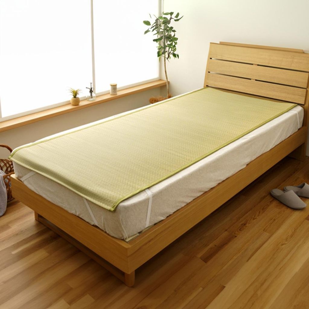 藺草涼蓆Iyashi,嚴選日本九州天然藺草。纖維緊密編織柔韌細膩,支撐彈性兼具。採無染土工法保留自然質地,粉塵少親膚不刺激。吸濕力為棉的2.5倍,有效調節濕氣抑制異味,夏夜安睡無負擔。四角鬆緊帶固定不滑動,適合孩童與敏感肌使用。鋪上一蓆草香撲鼻,感受療癒清涼的夏日時光。
